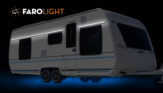 Avec l’aide de notre partenaire Faro-light, nous sommes fiers de vous proposer un service de pose de bandes LED en façade ainsi que de lumières multicolores sous-plancher pour votre caravane.